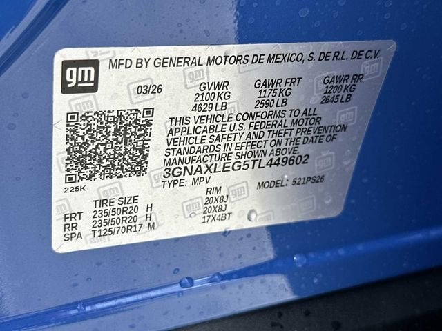 HOME OF THE LIFETIME WARRANTY! BUY WITH CONFIDENCE! WE LOVE TRADES! HASSLE FREE FINANCE PLANS FOR EVERYONE! PLEASE CALL TO ENSURE AVAILABLITY AS OUR INVENTORY CHANGES BY THE HOUR. Reef Blue Metallic 2026 Chevrolet Equinox FWD CVT 1.5L DOHC **TOUCHLESS DELIVERY - BUY FROM CONVENIENCE OF YOUR HOME**, HTTPS://WWW.DRIVEWAY.COM, HTTPS://WWW.CHEVYOFWESLEYCHAPEL.COM, New Feature, 2-Way Power Driver Lumbar Control Seat Adjuster, 4-Wheel Disc Brakes, 5.81 Final Drive Axle Ratio, 6 Speakers, ABS brakes, Air Conditioning, All-Weather Floor Mats, Alloy wheels, AM/FM radio: SiriusXM, Auto High-beam Headlights, Automatic temperature control, Brake assist, Bumpers: body-color, Cargo Mat, Compass, Convenience Package III, Delay-off headlights, Driver 8-Way Power Seat Adjuster, Driver door bin, Driver vanity mirror, Dual front impact airbags, Dual front side impact airbags, Electronic Stability Control, Emergency communication system: OnStar and Chevrolet connected services capable, Evotex Seat Trim, Four wheel independent suspension, Front anti-roll bar, Front Bucket Seats, Front Center Armrest, Front dual zone A/C, Front Fog Lamps, Front Passenger 2-Way Power Lumbar Seat Adjuster, Front Passenger 4-Way Manual Seat Adjuster, Front Passenger 8-Way Power Seat Adjuster, Front reading lights, Fully automatic headlights, Garage door transmitter, HD Surround Vision, Heated door mirrors, Heated Driver and Front Passenger Seats, Heated front seats, Heated Rear Outboard Seating Positions, Heated steering wheel, Illuminated entry, Interior Protection Package, Low tire pressure warning, Memory Settings, Mosaic Black Metallic Roof, Navigation System, Occupant sensing airbag, Outside temperature display, Overhead airbag, Overhead console, Panic alarm, Passenger door bin, Passenger vanity mirror, Power door mirrors, Power driver seat, Power Liftgate, Power steering, Power windows, Premium audio system: Chevrolet Infotainment 3, Radio data system, Radio: 11.3 Diagonal Advanced Color LCD Display, Rain sensing wipers, Rear anti-roll bar, Rear Camera Mirror Washer, Rear Pedestrian Alert, Rear reading lights, Rear seat center armrest, Rear window defroster, Rear window wiper, Remote keyless entry, Safety and Technology Package, Second Row All-Weather Mat, Security system, SiriusXM with 360L Trial Subscription, Speed control, Speed-sensing steering, Split folding rear seat, Spoiler, Sport steering wheel, Steering wheel mounted audio controls, Tachometer, Telescoping steering wheel, Tilt steering wheel, Traction control, Traffic Sign Recognition, Trip computer, Variably intermittent wipers, Ventilated Driver Seat, Ventilated Front Passenger Seat, Wheels: 19 Carbon Flash Metallic Aluminum, Wheels: 20 Black Machined-Face Aluminum.